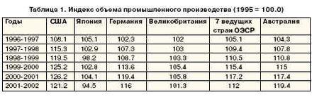 Австралия уже давно демонстрирует высокие темпы экономического роста, что позволило ей занять устойчивое положение лидера в списке «отличников» мировой экономики. Средние темпы прироста ВВП за последние семь лет превысили 4%. Австралия обогнала и Германию, и Великобританию, и США. Даже в разгар экономического кризиса в Азии темпы роста австралийской экономики превышали соответствующие показатели ведущих индустриальных стран: они были в два раза выше, чем в среднем по Организации экономического сотрудничества и развития (ОЭСР).