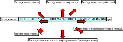 Направления маркетинговых исследований определяются возможным набором объектов для изучения. Существует несколько основных направлений маркетинговых исследований, каждое из которых имеет свой объект.