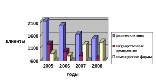За 2005-2008 годы наблюдалось уменьшение количества обслуживаемых предприятий, частных лиц и государственных структур, это объясняется существующей конкуренцией.