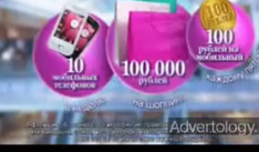 | Камера снимает девушку, которая поднимается на эскалаторе. Камера установлена наверху этой платформы. По мере того, как поднимается девушка, камера поднимается вверх. На фоне этого торгового центра появляются призы – 10 мобильных телефонов, 100000 рублей, 100 рублей на мобильный. | «Воздушный» - получай призы с легкостью! |