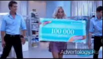 | Камера двигается назад. Девушка встает с кресла и идет на камеру. Передает шоколад консультанту, он ей - платье. Девушка примеряет его к телу, и оно уже на ней. Она отдает платье другому консультанту, он ей дает купон на 100 000 рублей. В момент, когда девушка передает купон консультанту одежда на ней меняется с платья на костюм. | С шоколадом воздушный это легко! Найди код в промоупаковке «Воздушного», зарегистрируй на сайте или по SMS и выиграй 100 000 рублей.... | |