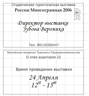 Получив представленные художником-оформителем материалы о логотипе выставки, пригласительном билете и визитке, я решила применить известные мне программы.