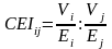 где Vi и Vj - объем продаж фирм i и j соответственно за некоторый период времени, а Ei и Ej объем затрат на рекламу этих фирм за тот же период.