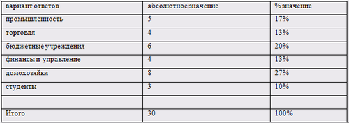 Профессиональный состав выборки представлен в таблице 2.8. По данным исследований (опрос) выяснилось, что постоянно покупают майонез домохозяйки. Универсальность майонеза той или иной марки подходит для приготовления всех или большинства стандартных блюд, в которых используется майонез в данной семье.