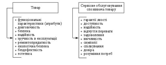 Вимоги до послуги мають бути чітко встановлені у вигляді характеристик, що піддаються спостереженню і допускають оцінювання їх споживачем. Характеристики (функціональні чи символічні) є важливими компонентами якості (рис. 2.1).