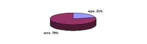 Мужчин - 21% и, соответственно, женщин - 79%. Подобная картина весьма обычна для российских магазинов, в которых покупателями в большинстве своём являются женщины. К тому же, женщины по природе менее агрессивны, легче идут на контакт и более охотно отвечают на вопросы, касающиеся покупок - явление обычное.