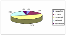 19 вопрос: «Род занятий». Наибольшее количество потребителей служащие (52%). См. рис.11.
