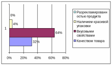 Таким образом, первая часть гипотезы полностью не подтверждается, красочность упаковки не играет большой роли в выборе сухарей СХК и поэтому не влияет на спрос. Но увеличение ассортимента, изменение фасовки, улучшение качества могут привести к увеличению количества покупаемых упаковок сухарей СХК. Вторую часть гипотезы можно считать правдивой (на основании большинства голосов), т.е. реклама продукта, наличие сухарей в каждом продуктовом магазине, увеличение числа фирменных магазинов СХК привлекут новых покупателей и увеличат конкурентоспособность данного товара.