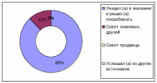 На 14 вопрос получены следующие результаты: 1. Увидел (а) в магазине и решил (а) попробовать – 22 человек (88%); 2.Совет знакомых, друзей- 3 человек (12%); 3.Совет продавца и услышал (а) из других источников не ответил ни один из опрошенных. См. рис.6.