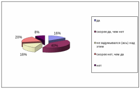 В восьмом вопросе 10 человек из 25 опрошенных (40%), ответили, что скорее стали бы покупать чаще сухари СХК, если бы фирменный магазин находился рядом с их домом – это первое место. На втором месте 5 человек (20%), ответившие «скорее нет, чем да». Третье место разделили варианты ответов «да» и «не задумывался (ась) над этим», по 4 человека (16%). На четвертом месте вариант «нет» - 2 человека (8%). См. рис.3.