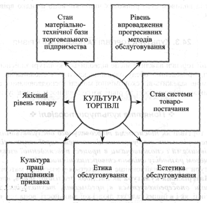 У практиці культура торгівлі полягає в оптимальному поєднанні культури і якості обслуговування.