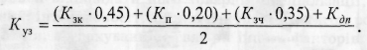 Зазначені показники неоднаковою мірою впливають на загальний рівень якості торговельного обслуговування. Найбільшу вагу має оцінка якості торговельного обслуговування самими покупцями, тому величина Кдп дорівнюватиме одиниці. Сума трьох інших показників теж становитиме одиницю, а більш вагомим з них є коефіцієнт завершеності купівлі (0,45), оскільки покупців перш за все цікавить наявність необхідних товарів і можливість задовольнити свій попит. Тому при визначенні узагальнюючого показника враховують важливість кожного з чотирьох вищезазначених показників. Отже, узагальнюючий коефіцієнт рівня якості обслуговування покупців у магазині (Куз ) розраховується за формулою: