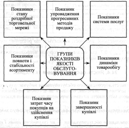 Кількісна оцінка якості торговельного обслуговування здійснюється за допомогою такої системи показників (рис. 2):