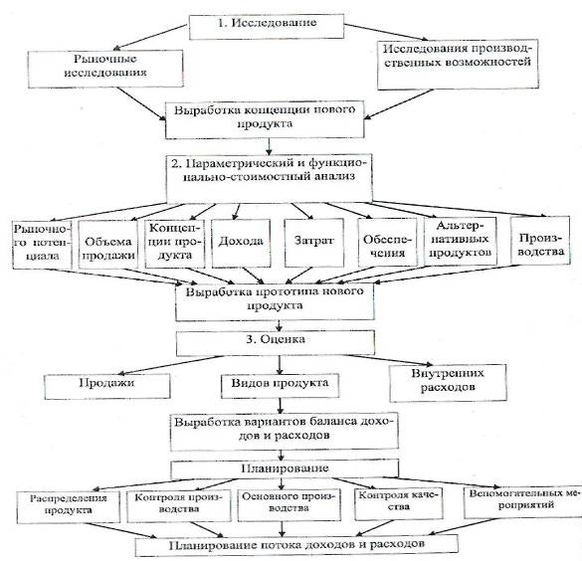 Для представленной схемы характерно, что на каждом этапе необходимо принять решения, которые создают исходный пункт для следующего этапа и определяют, таким образом, ход развития продукта.