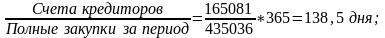 | 3 | Срок счетов кредиторов в днях закупки, дней | 138,5 | 73,7 |