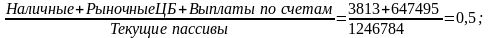 Коэффициент отношения кассовой наличности и дебиторской задолженности к текущим обязательствам предприятия: