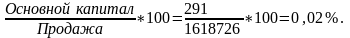 - основной капитал как процент продаж свидетельствует о том, сколько успешно эффективно используется основных фондов предприятия. Основной капитал уменьшился на 0,005% (с 0,02% до 0,015%).