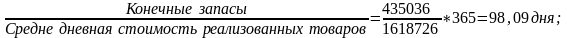 | 2 | Запасы в дневной стоимости реализованных продаж, дней | 98,09 | 172,6 |