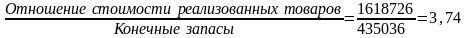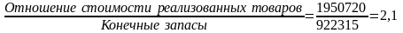 Иногда для определения скорости прохождения товара через фирму используют еще один дополнительный показатель - коэффициент оборачиваемости товара за 2007 год, который равен: