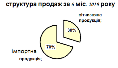 Структура продажів за перші 6 місяців 2010 року в Україні на даному ринку наведена на рисунку 1.