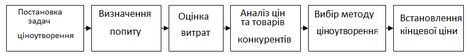 Ціна товару - величина принципово нестійка. На неї впливають: цикл, в якому знаходиться економіка; кон'юнктура ринку; конкуренти; посередники і покупці; змінні курси обміну валют та інше. Для успіху на ринку необхідно розробляти цінову політику і постійно перевіряти її ефективність, змінюючи її за мірою необхідності. Методика визначення кінцевої ціни визначається за наступними етапами: