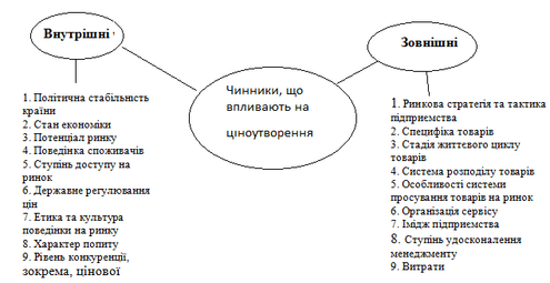 Розрізнюють 2 групи чинників, що впливають на ціну (рис 2).