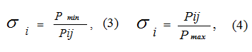 Рmin, Pmax – мінімальне і максимальне значення показника з усіх товарів – аналогів.