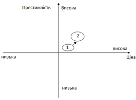 Ціна на продукцію набула незначного підвищення, а от престижність торгової марки підвищилася. На графіку можна відобразити наступним чином.