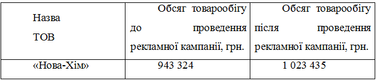Таблиця 12 — Товарообіг ТОВ «Нова-Хім» до та після проведення рекламної кампанії