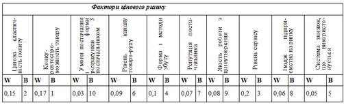 Розглянемо фактори цінового ризику для підприємства «Нова-Хім» за допомогою шкали експертних оцінок факторів цінового ризику.
