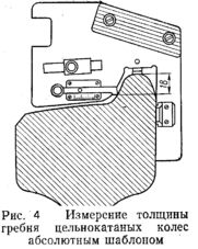 Для измерения толщины гребня применяют абсолютный шаблон (рис.4), к