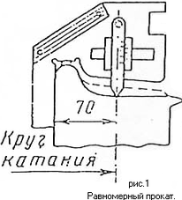 Прокат по поверхности катания колеса образуется вследствие его трения о рельсы (рис.1). Практически принято считать, что 1мм проката обода цельнокатаного колеса возникает в среднем после пробега колёсной парой 30000 км.