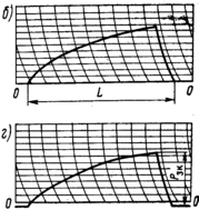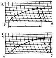 Длина сопряжения на диаграмме запрессовки определяется размером возрастающей ветви кривой, т.е. расстояниями от начала запрессовки до точки перехода в горизонтальную или наклонную прямую в конце (рис.8,а). При отсутствии горизонтального или наклонного участка в конце, длина сопряжения равна длине диаграммы (рис.8,б).