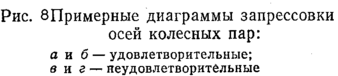 Если при напрессовке колеса на ось будет получена не удовлетворительная диаграмма (рис.8,г) или усилие не будет соответствовать требованиям инструкции, колёсную пару бракуют.