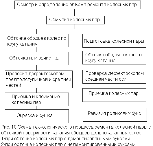 Схема технологического процесса обточки колес вагонной колесной пары с нормальным прокатом показана на рисунке 10.