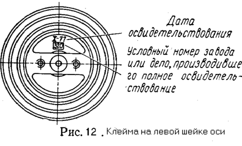 На принятой колесной паре после полного освидетельствования и формирования, а так же на принятых отдельных элементах ставят приемочные клейма:
