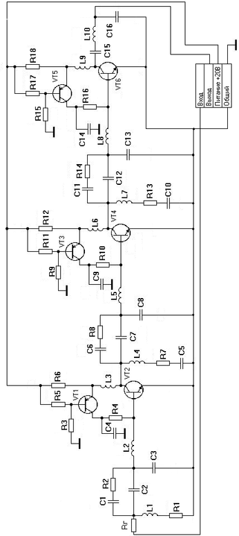 где S210 - коэффициент передачи входного каскада. Расчет входного каскада окончен.