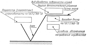 Нанося размеры элементов деталей, или после нанесения их, конструктор указывает на чертеже параметры и характеристики шероховатости поверхностей, установленные ГОСТ 2789-73.