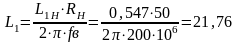 Найдём Lк, исходя из условий, что на нижней частоте полосы пропускания её сопротивление много больше сопротивления нагрузки. В нашем случае: