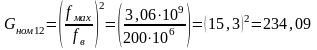G12ном=(fmax/fтек)2=(3060/200)2=15,32=234,09