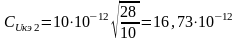 Так как в справочнике Сu кэ найдена при напряжении 28 В, а нам необходима при 10 В, то, используя формулу (2.8), получим: