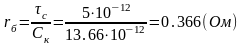 Найдем при помощи постоянной времени цепи обратной связи сопротивление базового перехода по формуле: