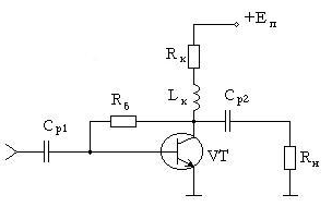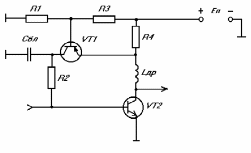 Величина индуктивности дросселя выбирается таким образом, чтобы переменная составляющая тока не заземлялась через источник питания, а величина блокировочной ёмкости – таким образом, чтобы коллектор транзистора VT1 по переменному току был заземлён.