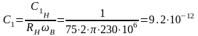 Выходную корректирующую цепь можно рассчитать с использованием методики Фано, которая подробно описана в методическом пособии [2]. Зная Свых и fв можно рассчитать элементы L1 и C1 .