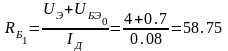 Напряжение эмиттера выбирается равным . Ток делителя выбирается равным , где - базовый ток транзистора и вычисляется по формуле: