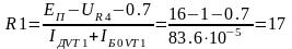 В качестве VT1 возьмём КТ814А. Выбираем падение напряжения на резисторе из условия (пусть В), тогда . Затем производим следующий расчёт:
