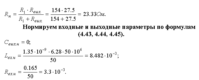 В начале расчета определяют неравномерность амплитудно-частотной характеристики (АЧХ) приходящейся на каждый каскад. Затем из таблицы, которая находится в методическом пособии [6] по неравномерности АЧХ определяют коэффициенты а1 , а2,, а3. После находят нормированные значения Свых.н , Lвх.н и Rвх.н по следующим формулам: