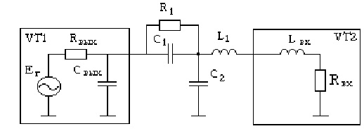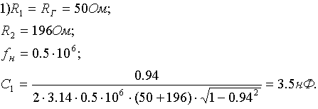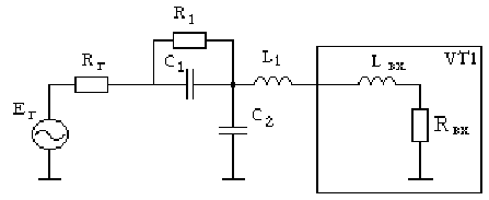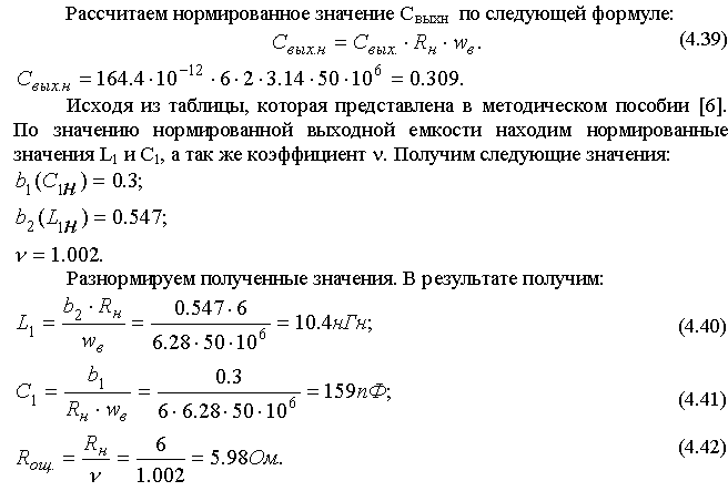 Выходную корректирующую цепь можно рассчитать с использованием методики Фано, которая подробно описана в методическом пособии [6]. Зная Свых и fв можно рассчитать элементы L1 и C1 .
