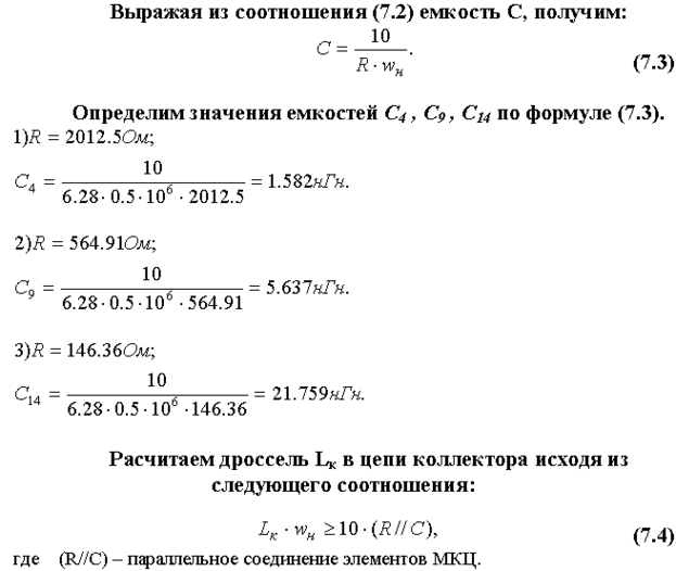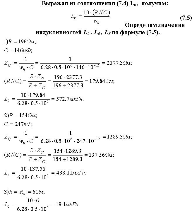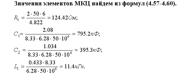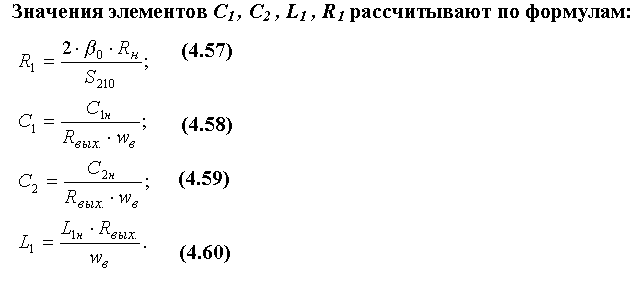 Рассчитаем элементы схемы воспользовавшись формулами приведенными в пункте 4.4.3 и рисунком 4.9.