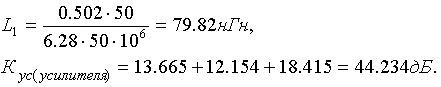 Усилитель имеет запас по усилению 14дБ, это необходимо для того, чтобы в случае ухудшения параметров отдельных элементов коэффициент передачи усилителя не опускался ниже заданного уровня.